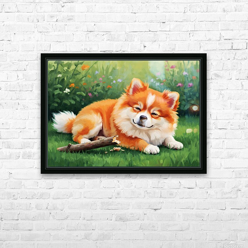 Satisfied Pomeranian Puppy After Playtime Picture Frame Printing