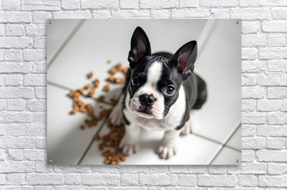 Get this artwork "Guilty Boston Terrier Puppy After Making Mess" in a framed print.