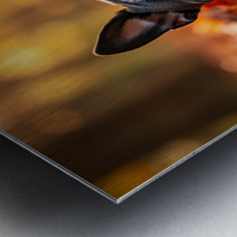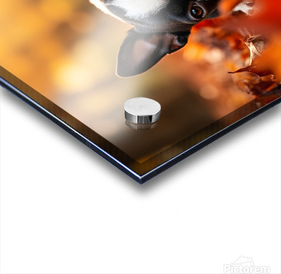 Sleepy Boston Terrier Puppy Rests In Autumn Leaves Picture Frame Printing
