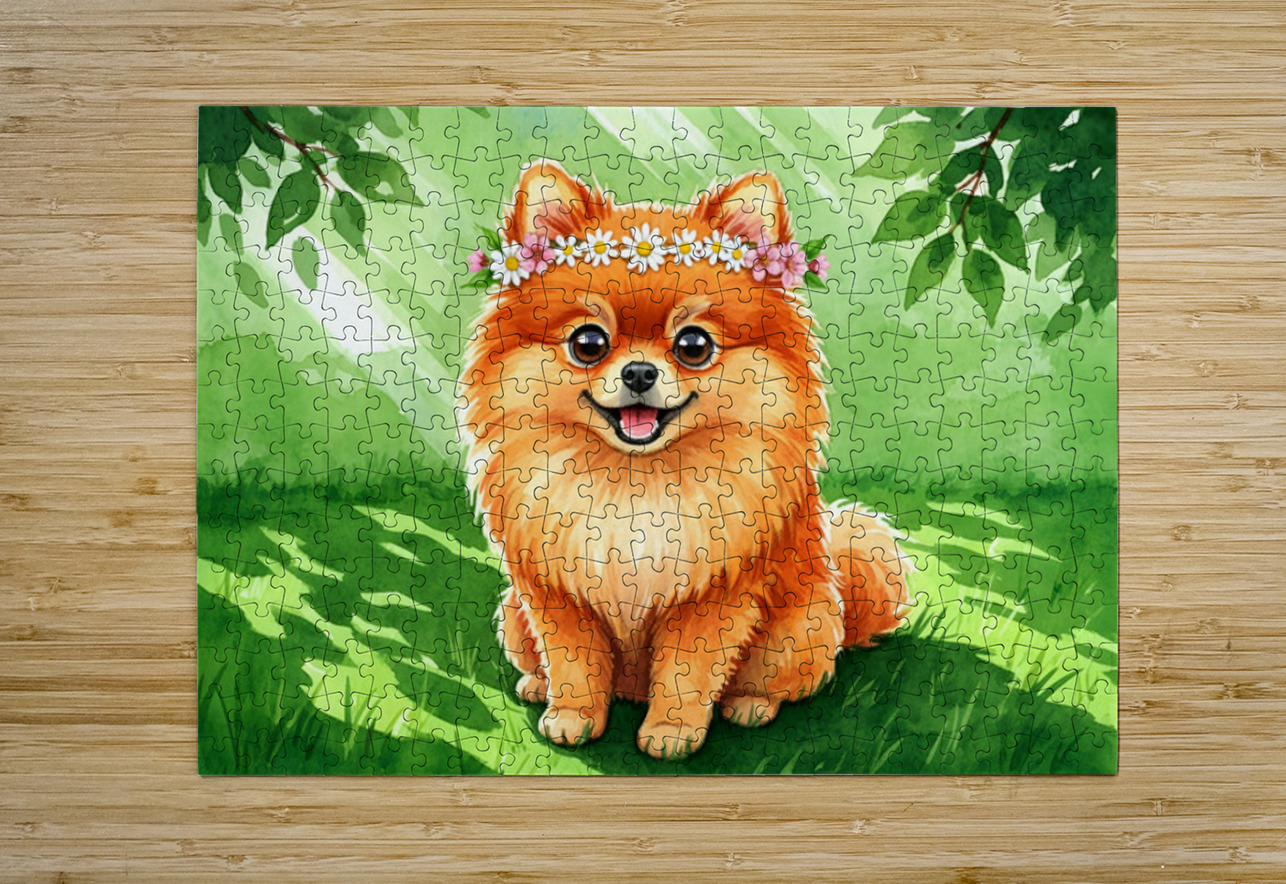 Pomeranian Puppy Discovers A Beautiful Flower Crown Puppy Prints Puzzle printing