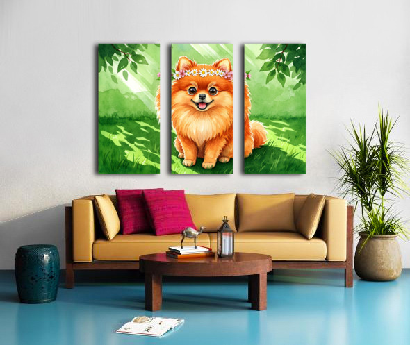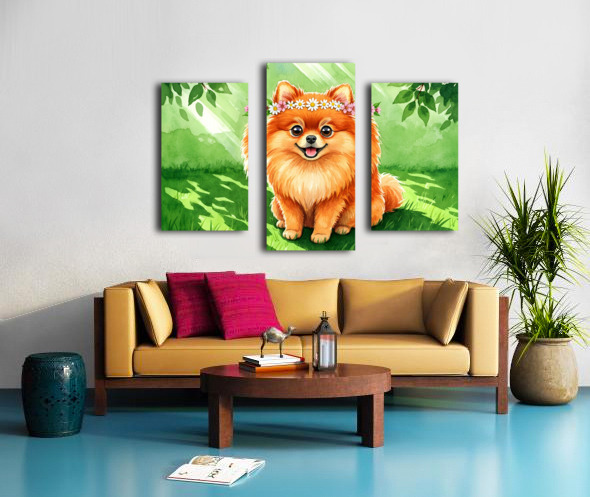 Pomeranian Puppy Discovers A Beautiful Flower Crown Picture Frame Printing