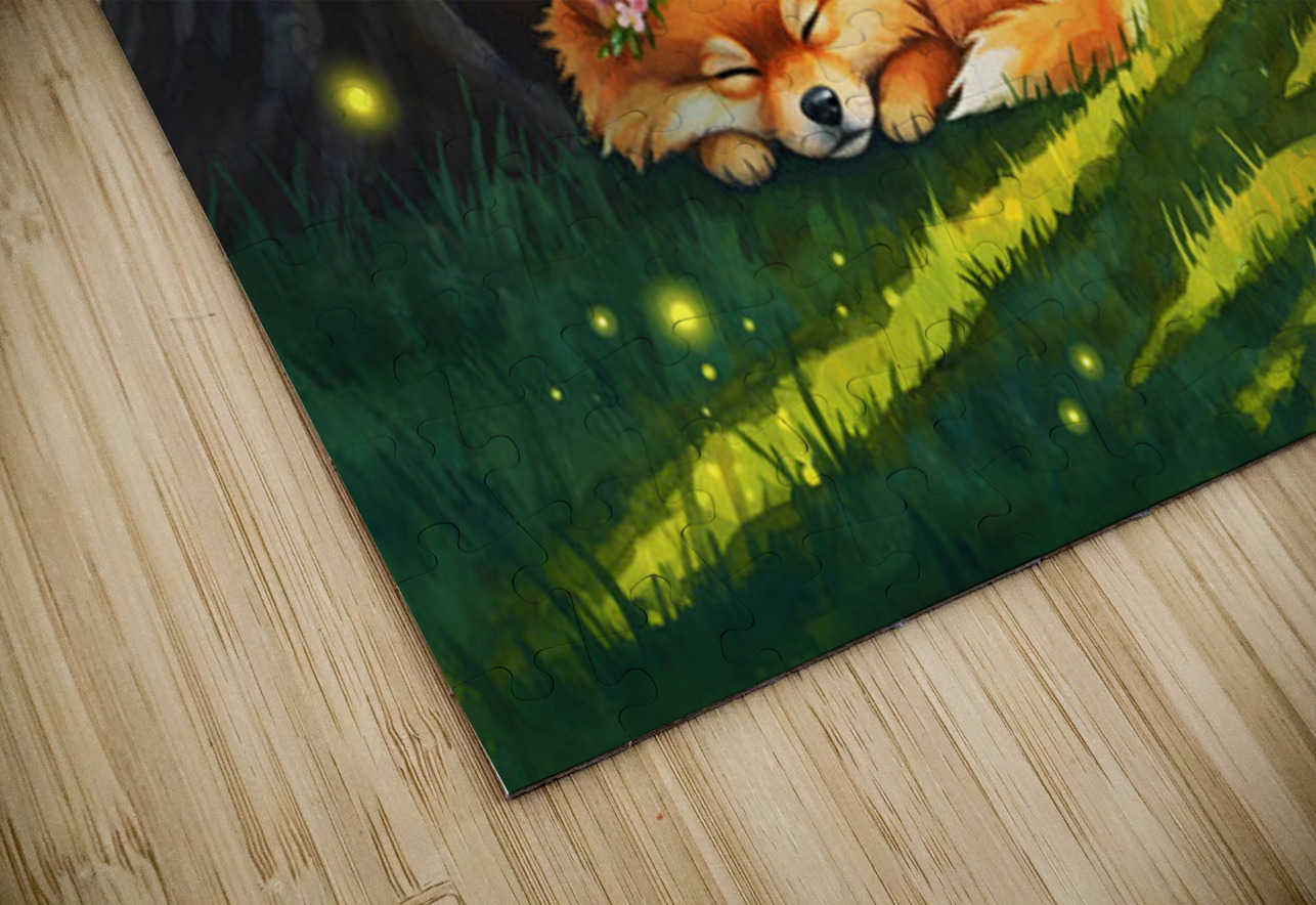 Pomeranian Puppy Sleeps Under Oak Tree At Sunset Puppy Prints Puzzle printing