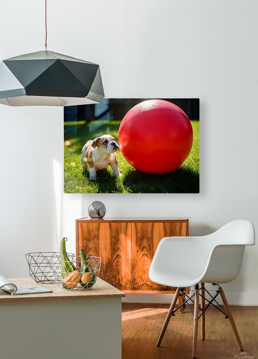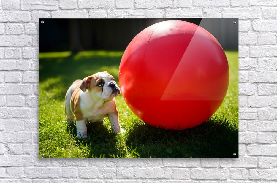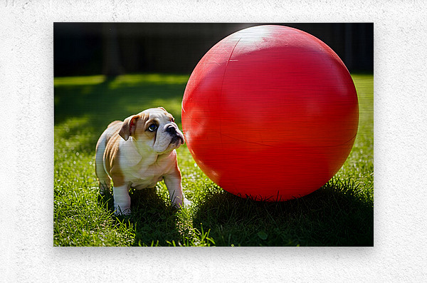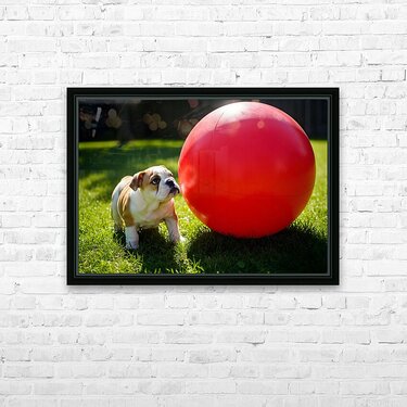 Bulldog Puppy Discovers Giant Red Ball Picture Frame Printing
