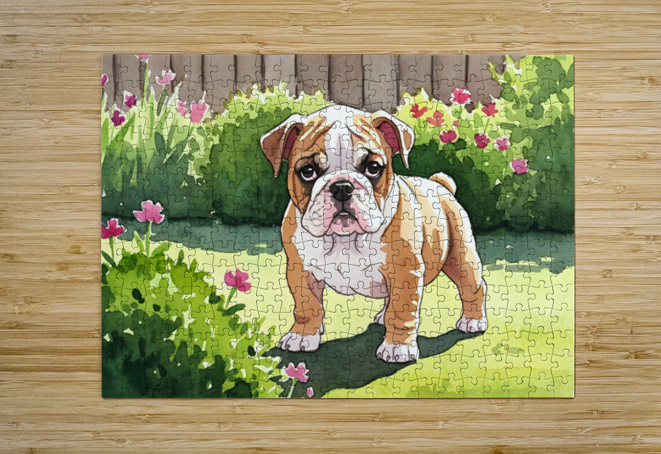 Bulldog Puppy Explores The Garden Alone Puppy Prints Puzzle printing