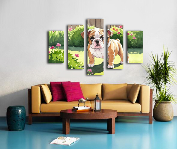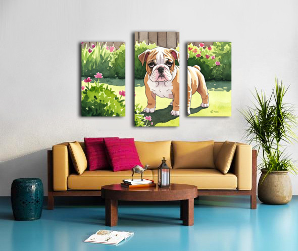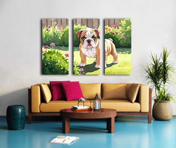 Bulldog Puppy Explores The Garden Alone Canvas print