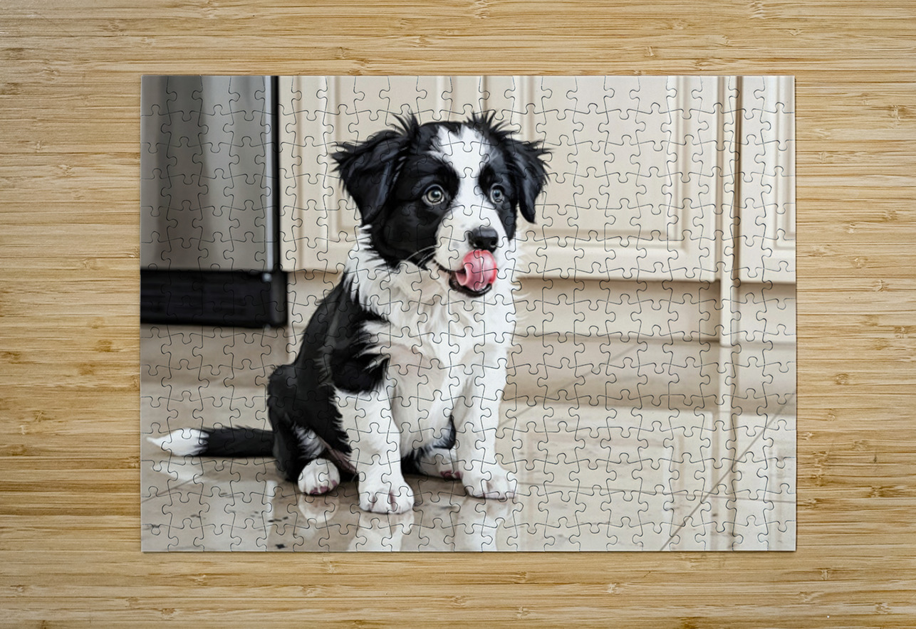 Border Collie Puppy Anticipates Delicious Treat Puppy Prints Puzzle printing