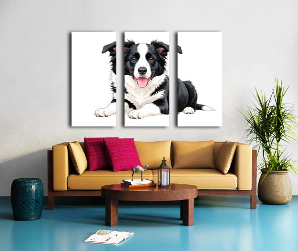 Happy Border Collie Puppy Enjoys Well Deserved Reward Canvas print