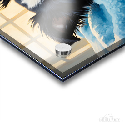 ABOUT THIS ARTWORK: BORDER COLLIE PUPPY DISCOVERS COZY BLANKET FORT