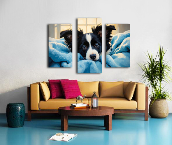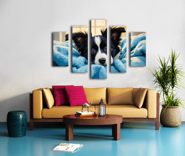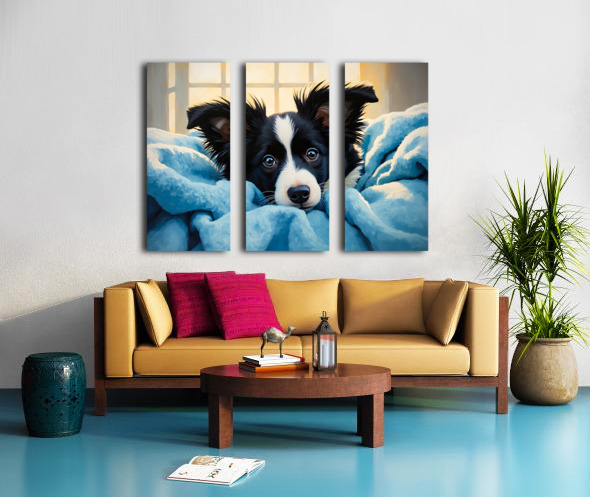 Border Collie Puppy Discovers Cozy Blanket Fort Canvas print