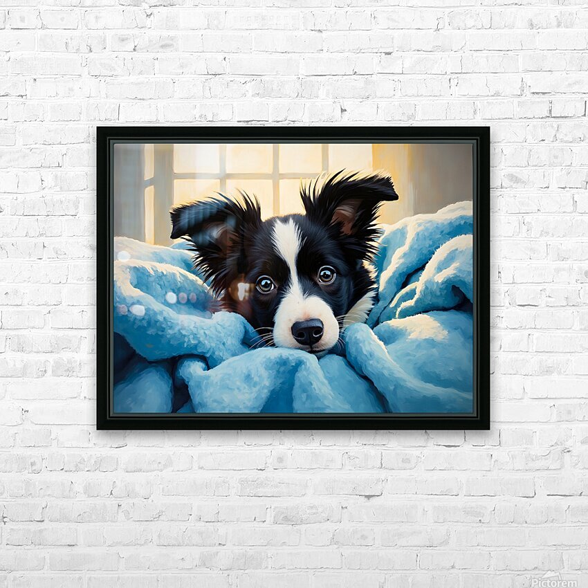 Border Collie Puppy Discovers Cozy Blanket Fort Frame print