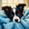 An adorable black and white Border Collie puppy with distinctive markings peeks curiously from beneath a soft blue blanket. The puppys bright eyes and...[+]