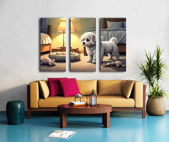 Bichon Frise Puppy Discovers Bedtime Canvas print