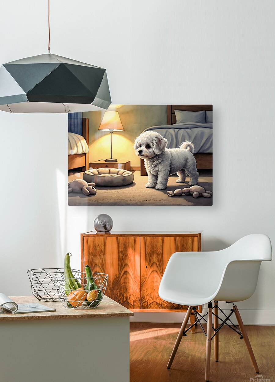 ABOUT THIS ARTWORK: BICHON FRISE PUPPY DISCOVERS BEDTIME