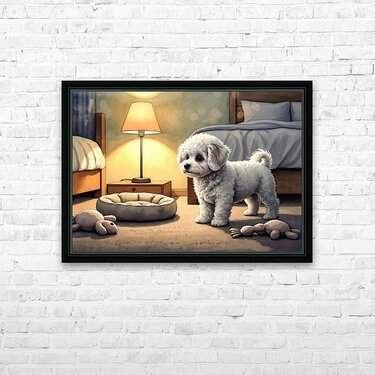 Bichon Frise Puppy Discovers Bedtime Picture Frame Printing