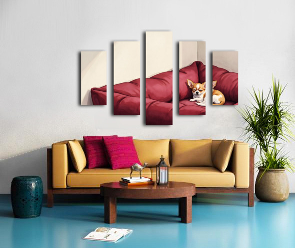Get this artwork "Sleepy Chihuahua Puppy Naps In Corner Of Giant Bed" in a framed print.