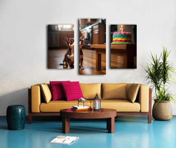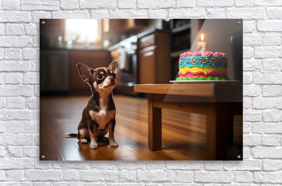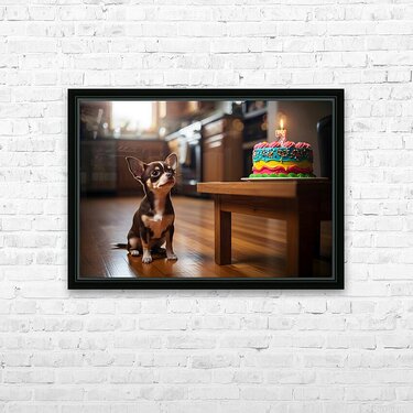 Chihuahua Puppy Discovers Birthday Cake Picture Frame Printing
