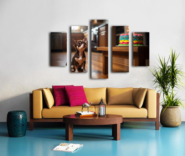 Chihuahua Puppy Discovers Birthday Cake Canvas print
