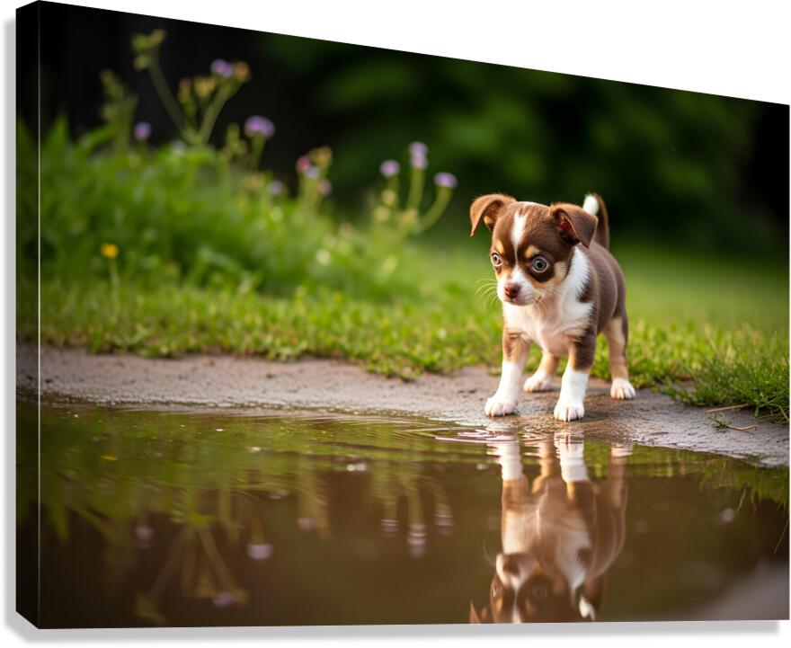 Chihuahua Puppy Discovers Muddy Puddle Canvas print