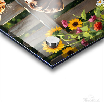 Get this artwork "German Shorthaired Pointer Puppy Meets Garden Cat" in a framed print.