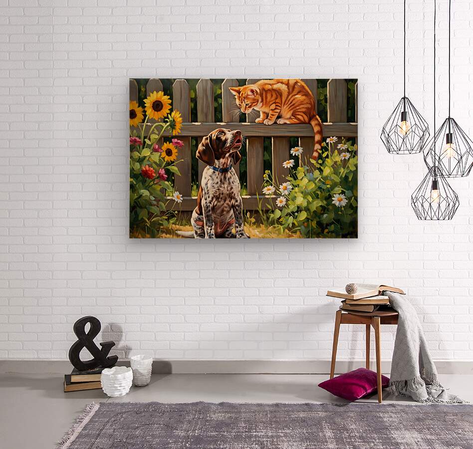 ABOUT THIS ARTWORK: GERMAN SHORTHAIRED POINTER PUPPY MEETS GARDEN CAT