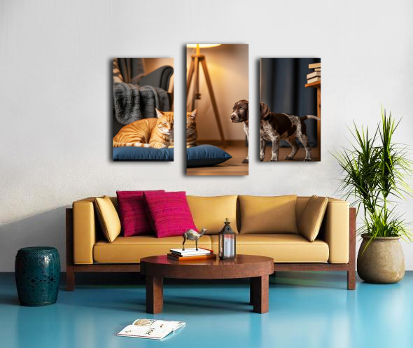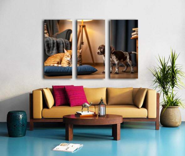 German Shorthaired Pointer Puppy Meets Sleepy Cat Canvas print