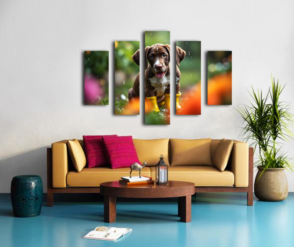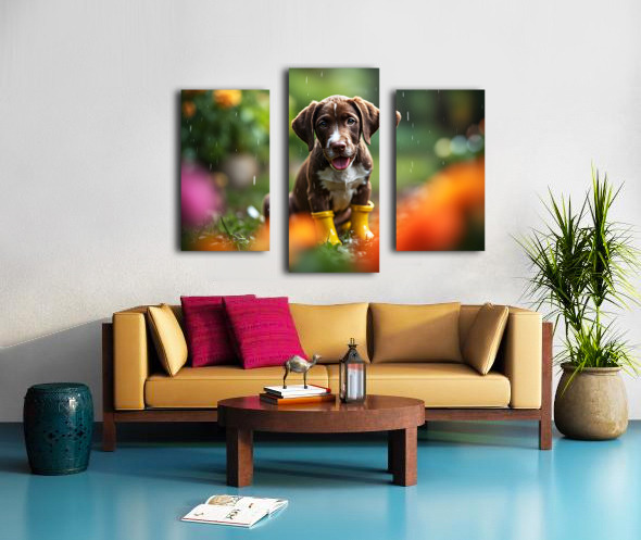Happy German Shorthaired Pointer Puppy Rests In Rain Canvas print