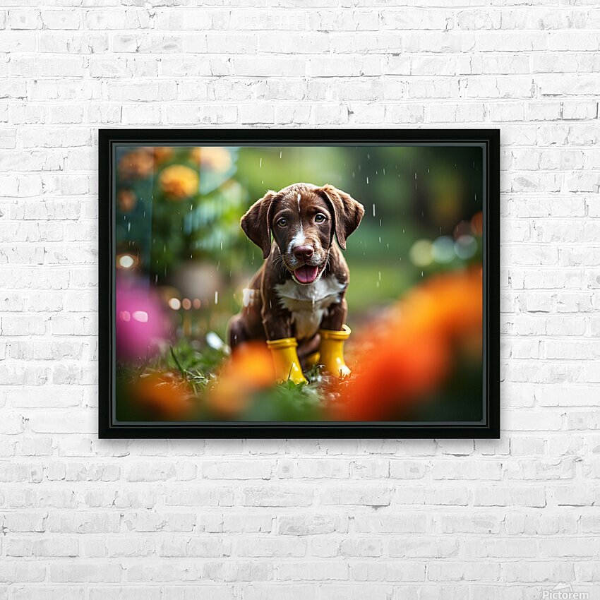 Happy German Shorthaired Pointer Puppy Rests In Rain Picture Frame Printing