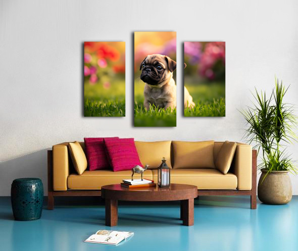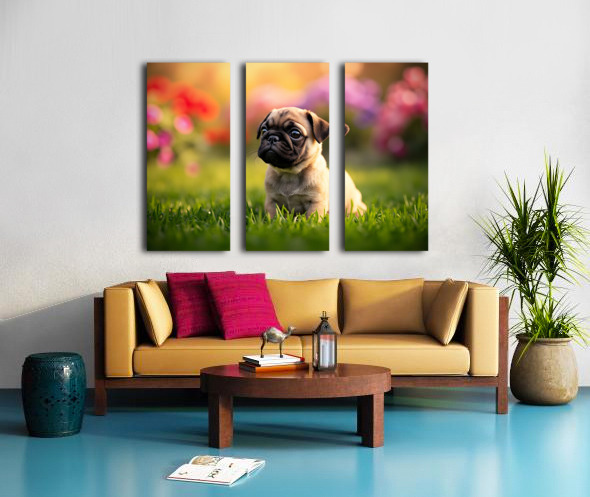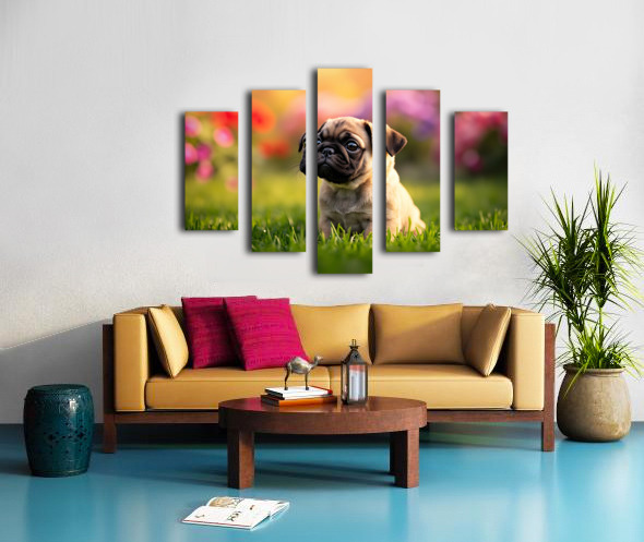 Pug Puppy Discovers Fun Game In Garden Canvas print