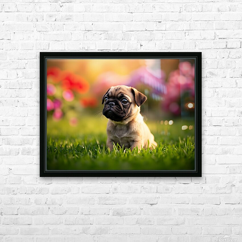Pug Puppy Discovers Fun Game In Garden Picture Frame Printing