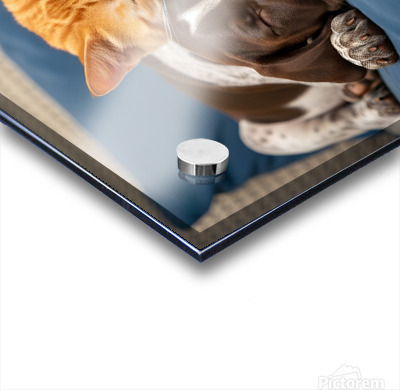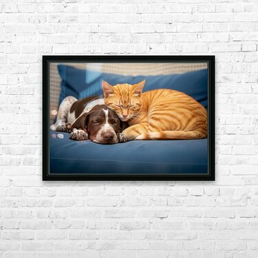 Puppy And Cat Snuggle Together Peacefully Picture Frame Printing