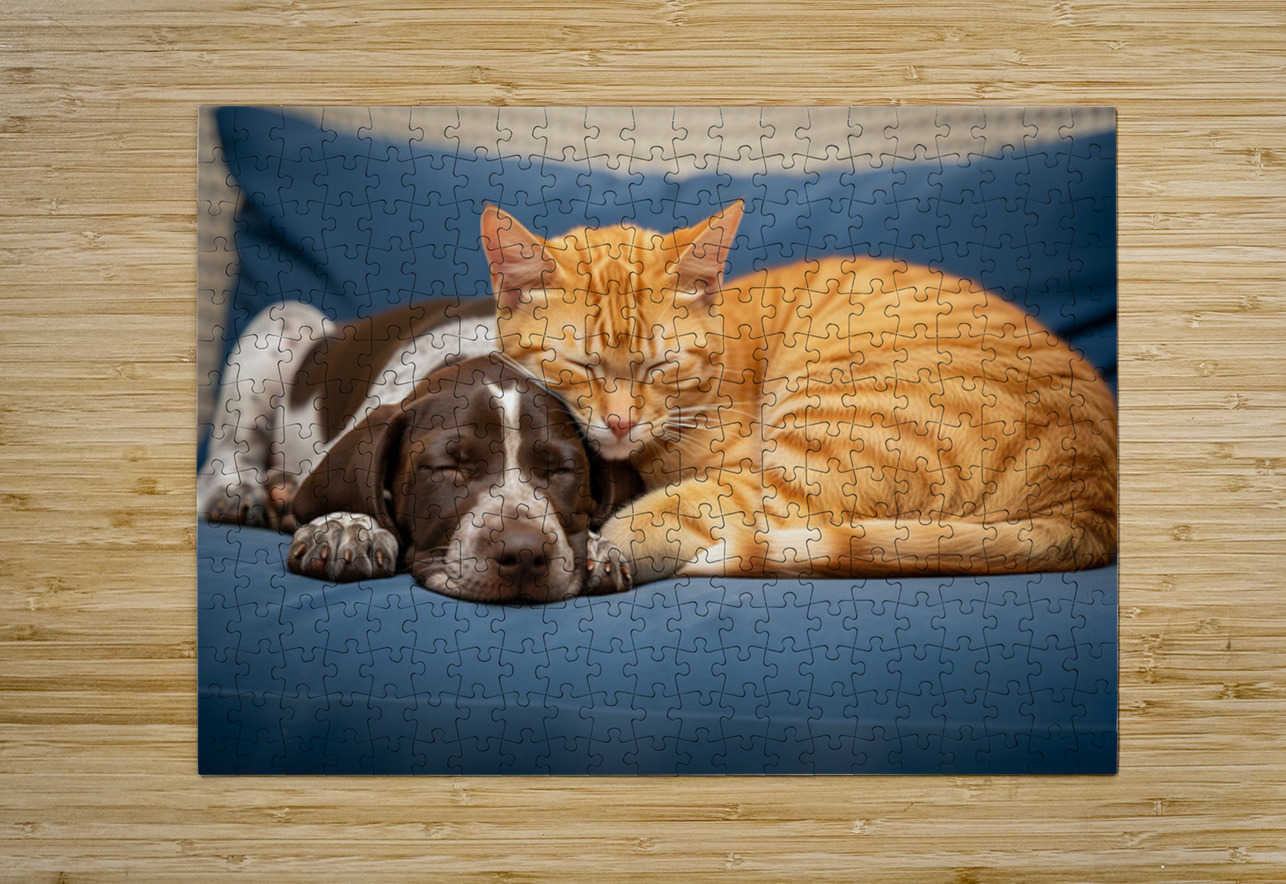 Puppy And Cat Snuggle Together Peacefully Puppy Prints Puzzle printing