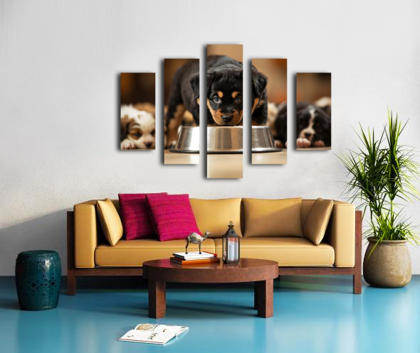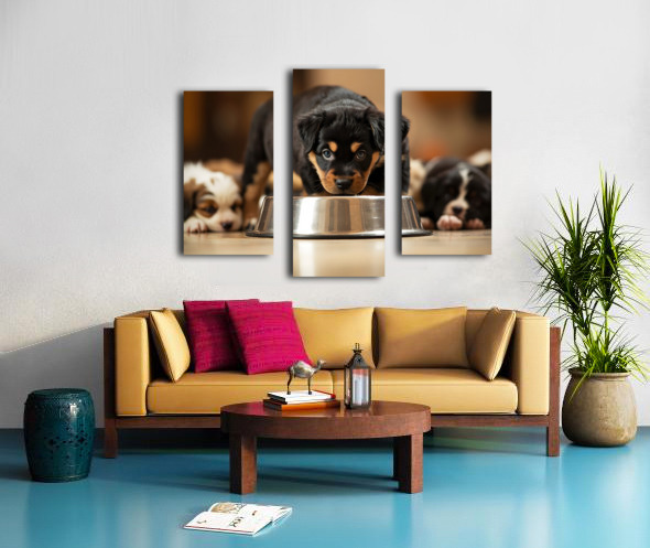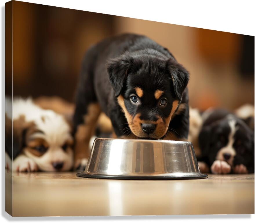 Rottweiler Puppy Spots The Water Bowl Canvas print