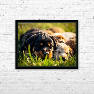 Sleepy Puppies Rest After Playing Hard Frame print