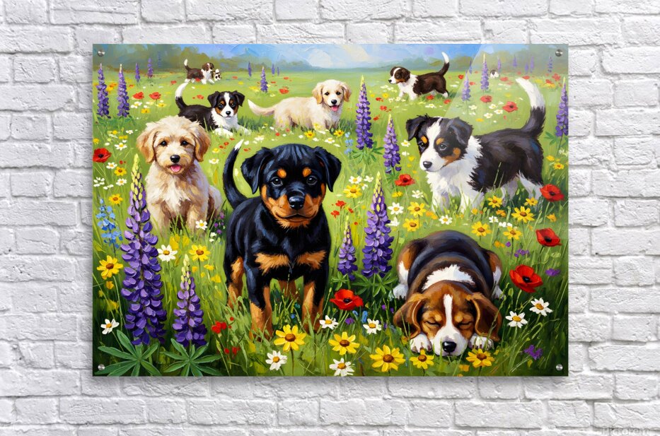 ABOUT THIS ARTWORK: ROTTWEILER PUPPY DISCOVERS WILDFLOWER FIELD