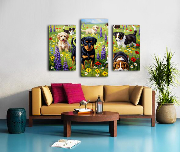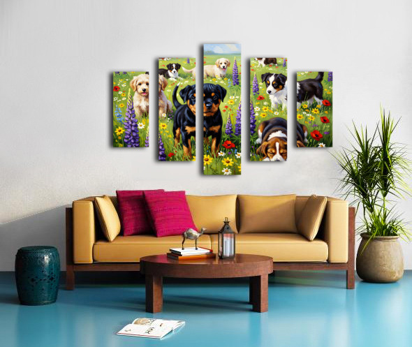 Rottweiler Puppy Discovers Wildflower Field Canvas print