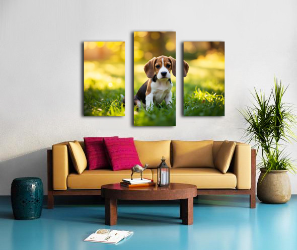 Beagle Puppy Senses Something Strange Behind Him Canvas print