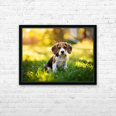 Beagle Puppy Senses Something Strange Behind Him Picture Frame Printing