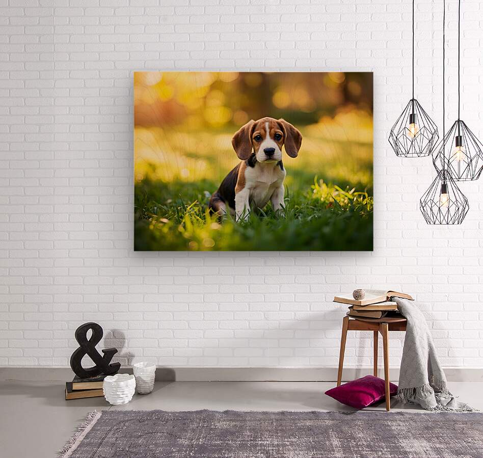 ABOUT THIS ARTWORK: BEAGLE PUPPY SENSES SOMETHING STRANGE BEHIND HIM