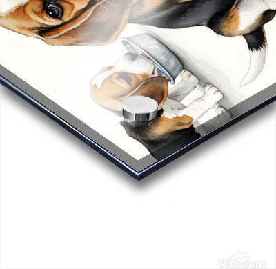 ABOUT THIS ARTWORK: BEAGLE PUPPY SATISFIED AFTER DRINKING WATER