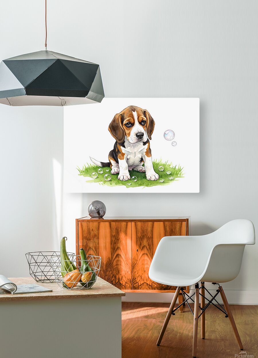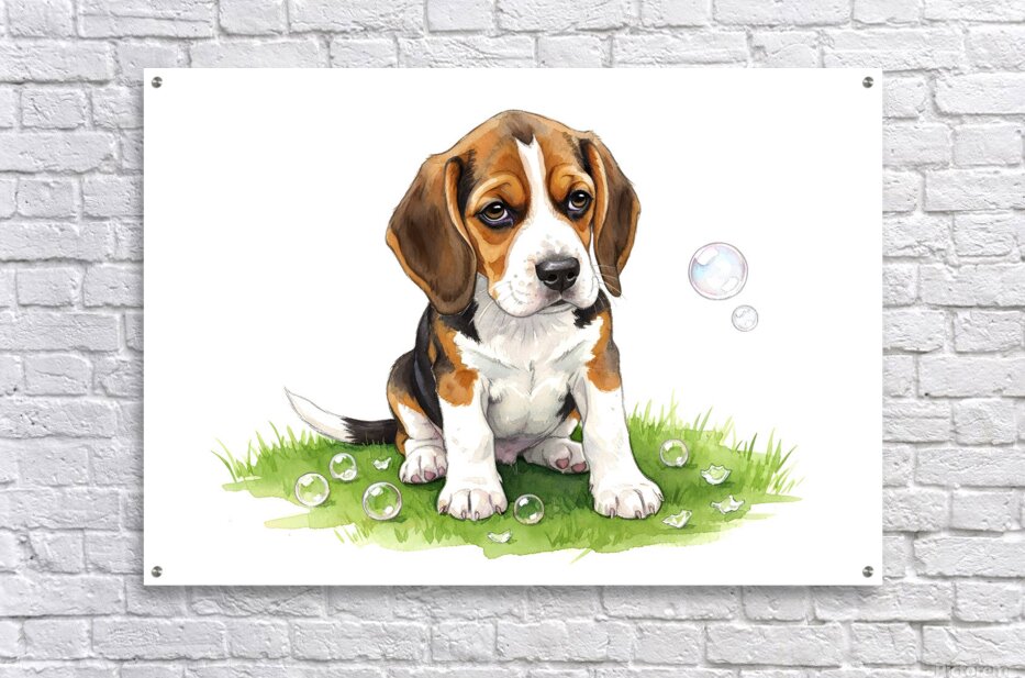 ABOUT THIS ARTWORK: BEAGLE PUPPY CONFUSED AFTER BUBBLES POP AWAY
