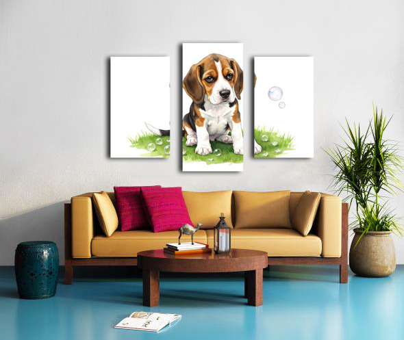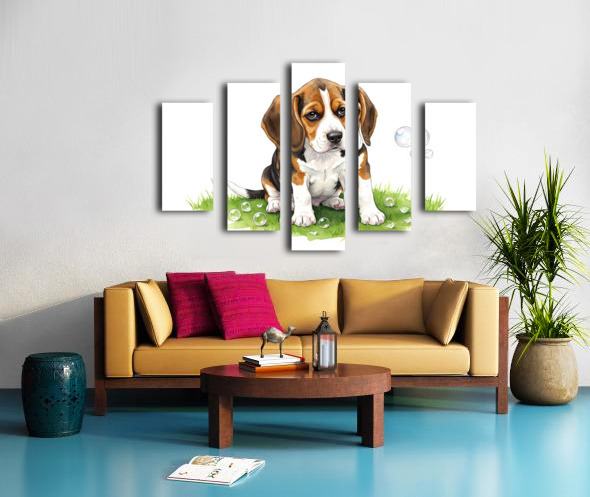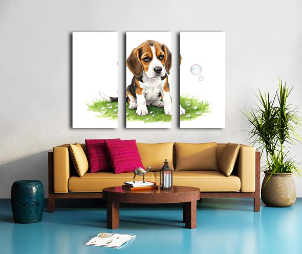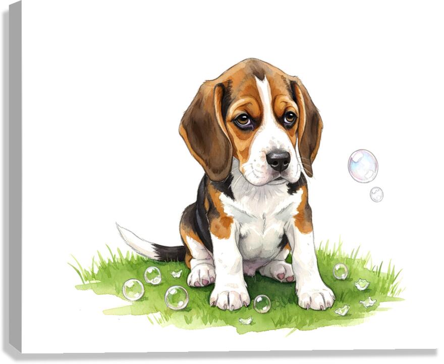 Beagle Puppy Confused After Bubbles Pop Away Canvas print