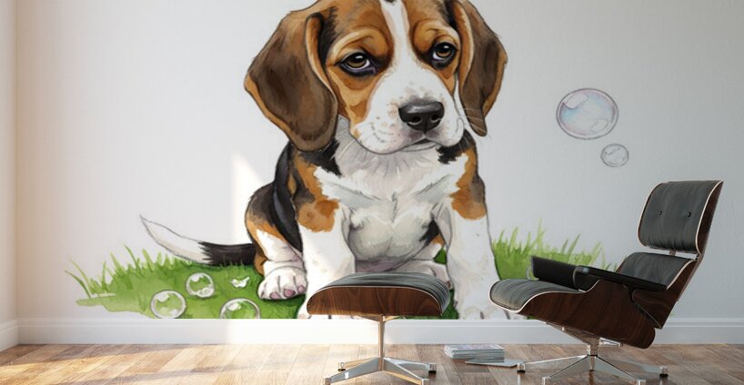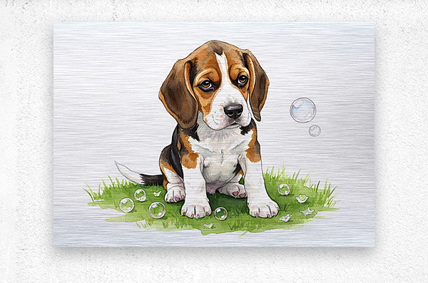 Get this artwork "Beagle Puppy Confused After Bubbles Pop Away" in a framed print.