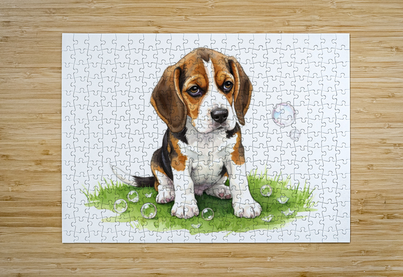 Beagle Puppy Confused After Bubbles Pop Away Puppy Prints Puzzle printing