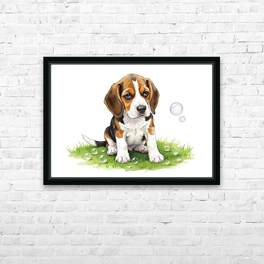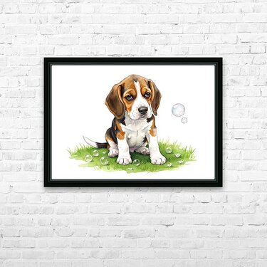 Beagle Puppy Confused After Bubbles Pop Away Picture Frame Printing