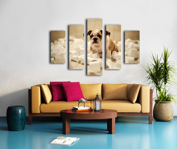 Bulldog Puppys Toilet Paper Trouble Begins Canvas print