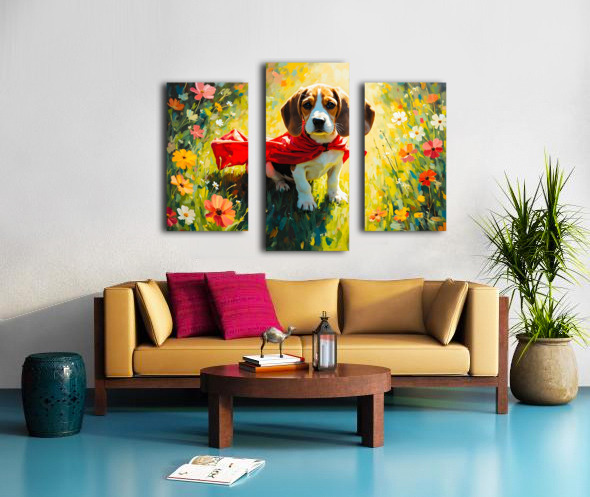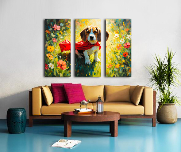 Beagle Puppy Discovers His Magic Cape Canvas print