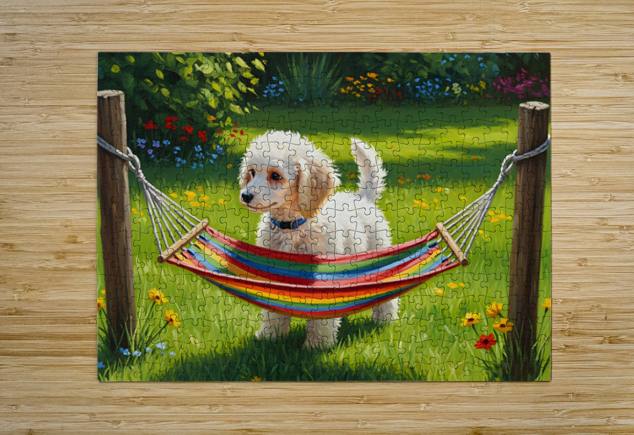 Poodle Puppy Discovers Tiny Hammock Puppy Prints Puzzle printing