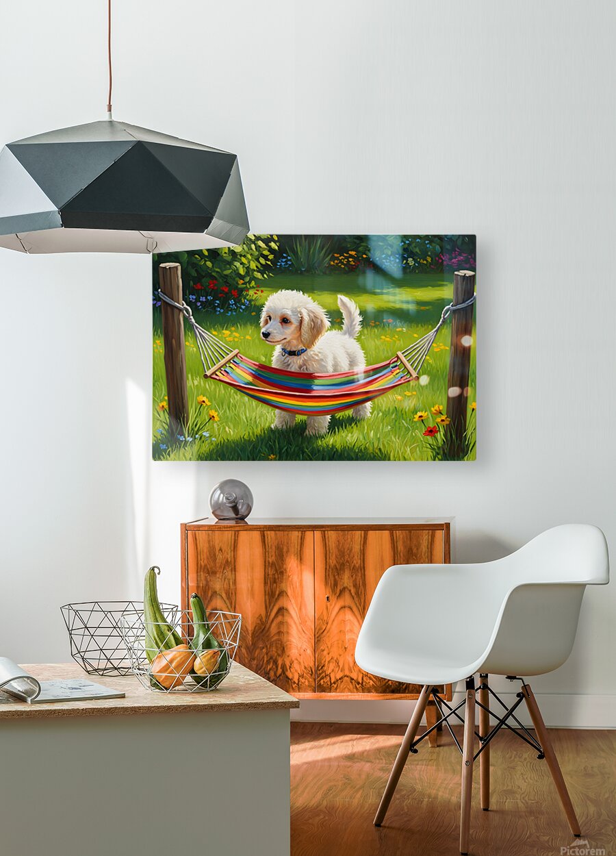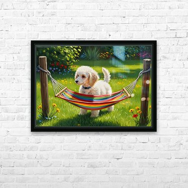 Poodle Puppy Discovers Tiny Hammock Picture Frame Printing