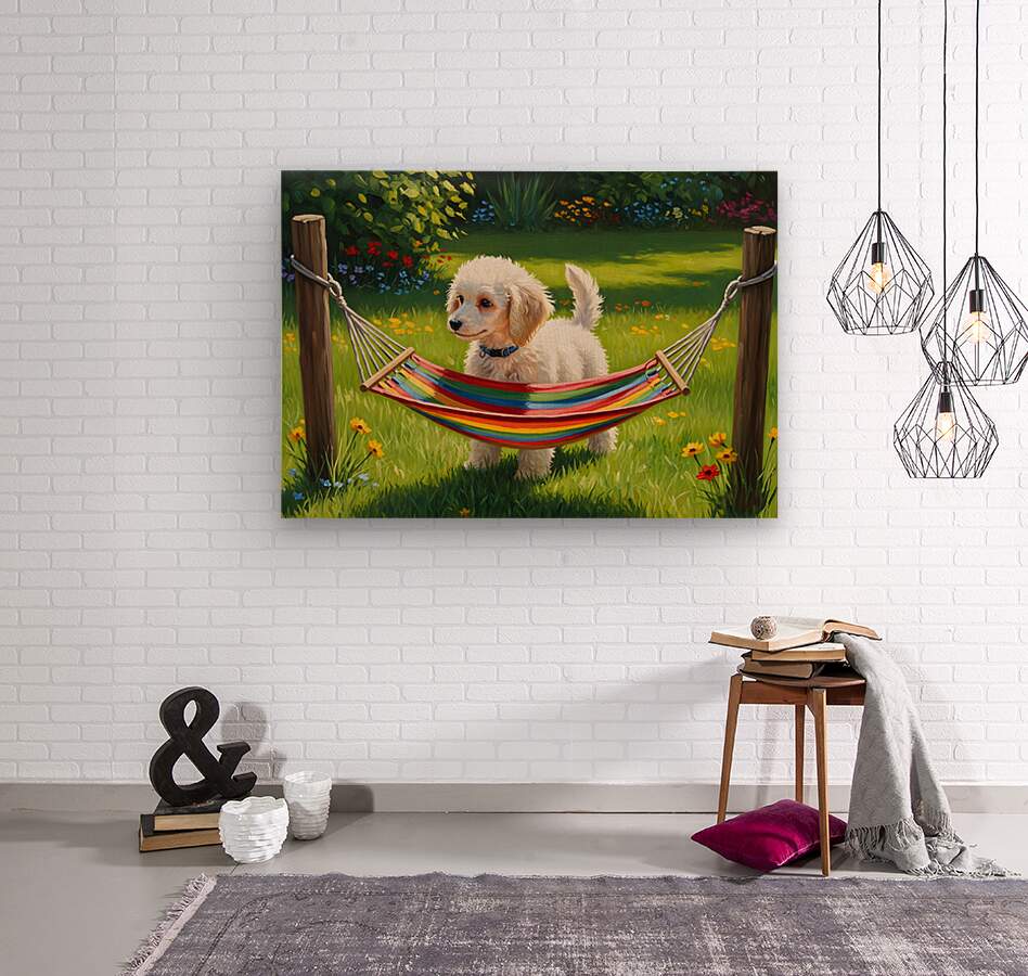 Poodle Puppy Discovers Tiny Hammock Picture Frame Printing