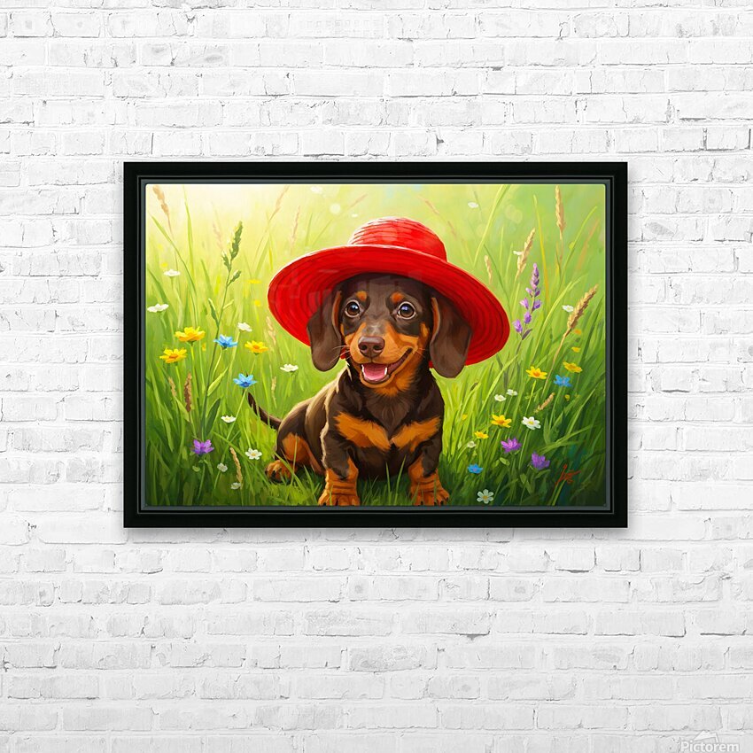 Dachshund Puppy Discovers A Giant Red Hat Picture Frame Printing
